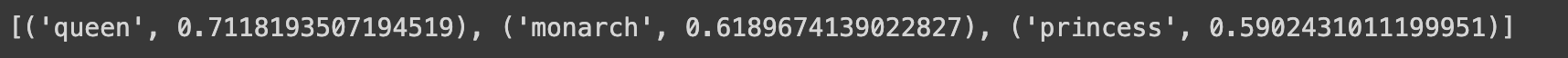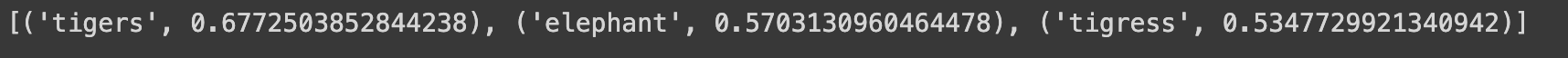 words = [ "king", "queen", "man", "woman", "lion", "tiger", "red", "orange"]