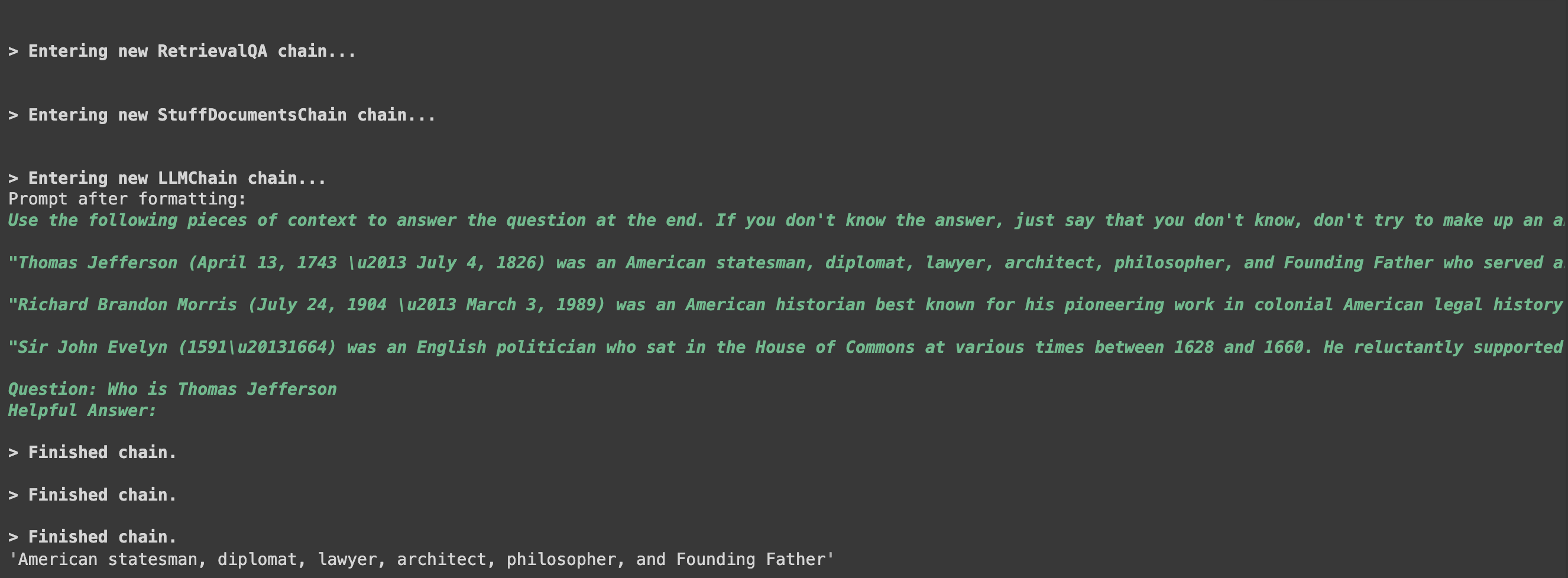 위의 과정을 한번에 하고싶다면 QA pipeline을 생성한 다음, 추가적으로 모델별 인수를 사용하여 LangChain pipeline을 생성하면 된다.